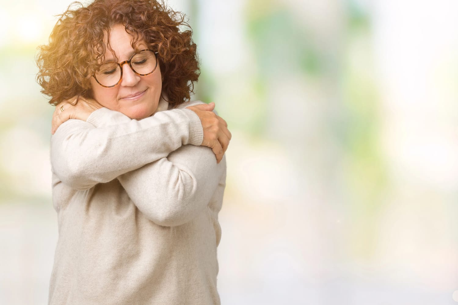 Nimm dir jeden Tag einen Moment Zeit, um dich selbst achtsam zu berühren, wie z.B. deine Hand aufs Herz zu legen oder dich selbst in den Arm zu nehmen. Diese Berührungen können dir helfen, Mitgefühl und Wärme zu spüren.
